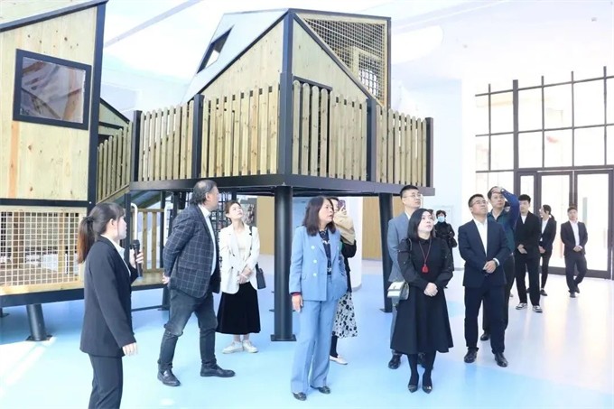 在飛友副總經(jīng)理張永啟的陪同下,來(lái)自中美兩地的與會(huì)嘉賓參觀了飛友學(xué)前教育裝備文化中心。