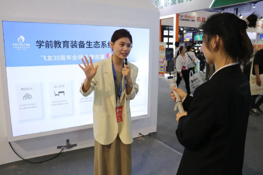 在展會(huì)現(xiàn)場,飛友學(xué)前教育裝備研究院院長林炎琴接受了采訪。通過林院長的講述大家了解到,飛友教研院通過研究兒童、研究玩具,打造了一個(gè)專業(yè)的成果孵化平臺(tái),為產(chǎn)品的研發(fā)設(shè)計(jì)注入了幼教思維理念。