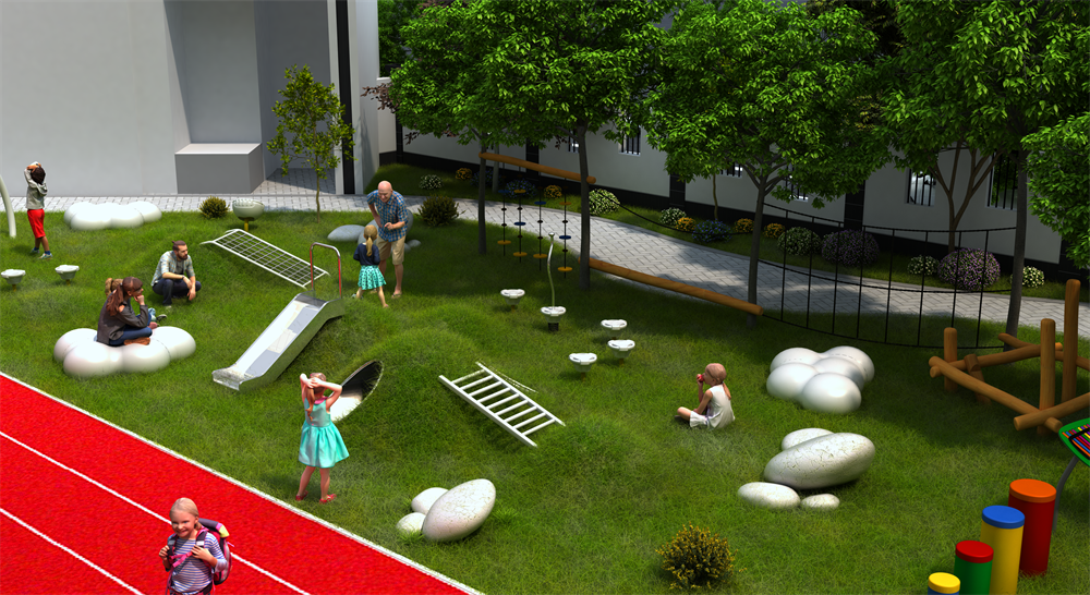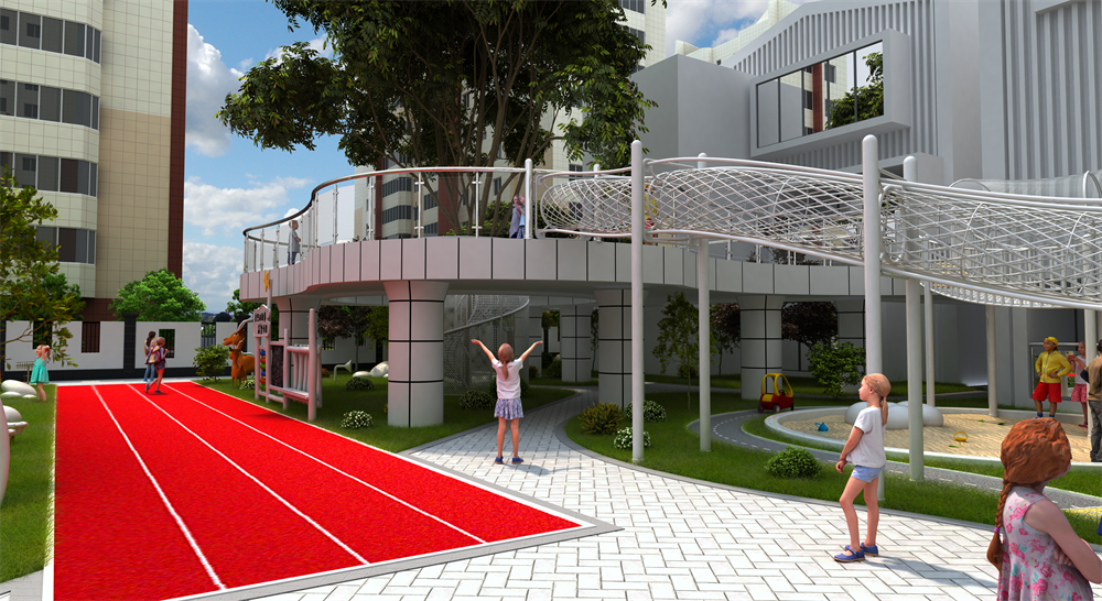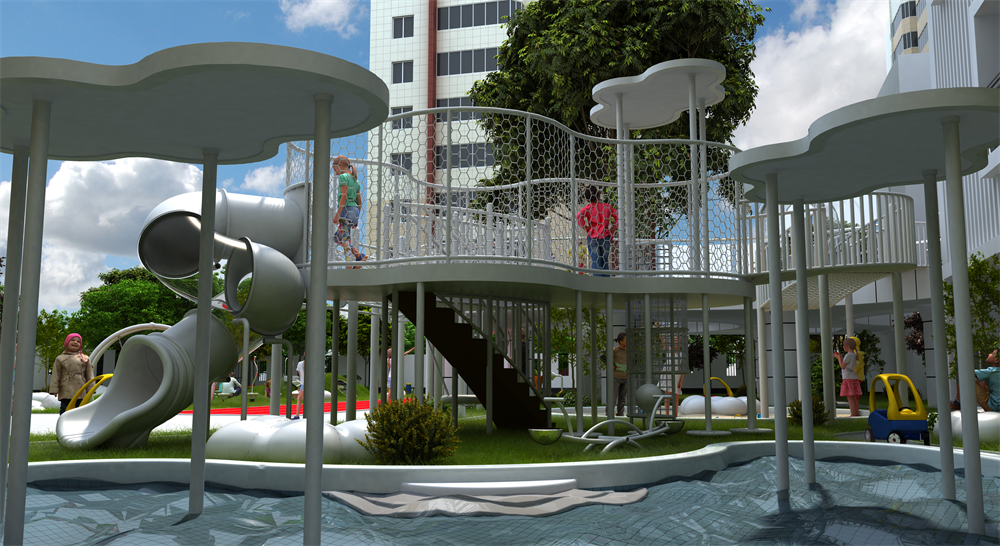這座幼兒園的游樂設(shè)施“云?!睂iT為孩子們打造的,以云為主題設(shè)計,主體玩具采用白云做造型,給孩子們營造一種在云端玩耍的感覺。自由,無拘無束,和云一起眺望遠(yuǎn)方,不被眼前的障礙與困難所折服。